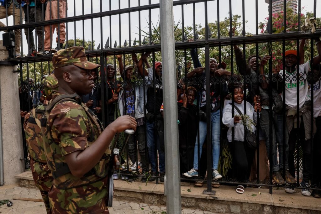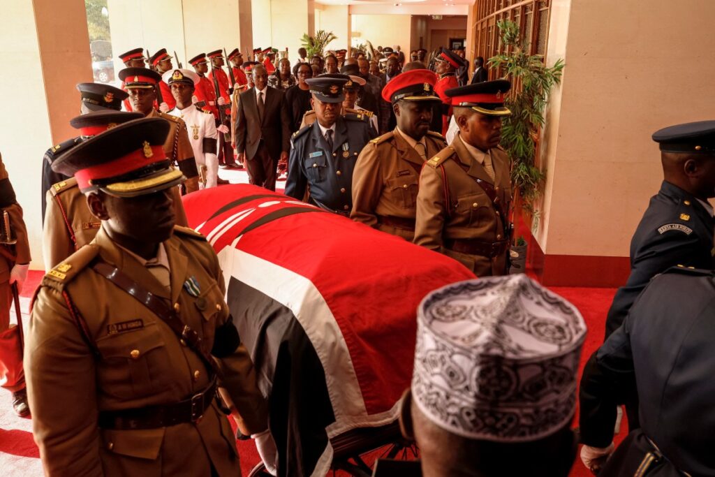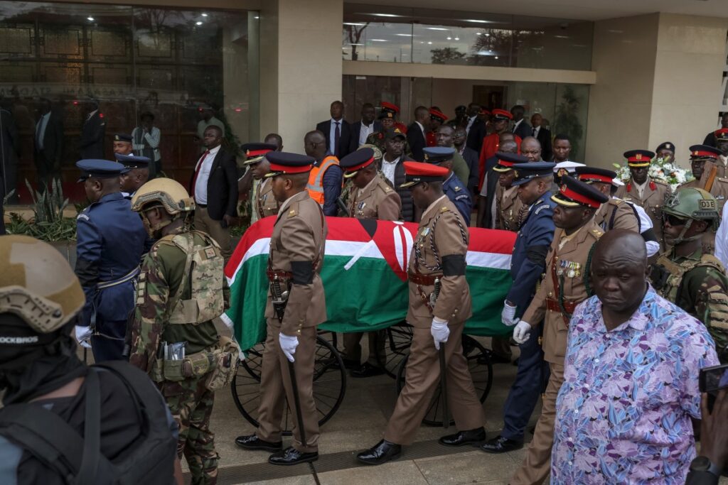 The body was due to be taken to parliament, but with supporters clambering up the gates, the authorities rerouted the coffin to Kasarani Stadium on the outskirts of the capital.