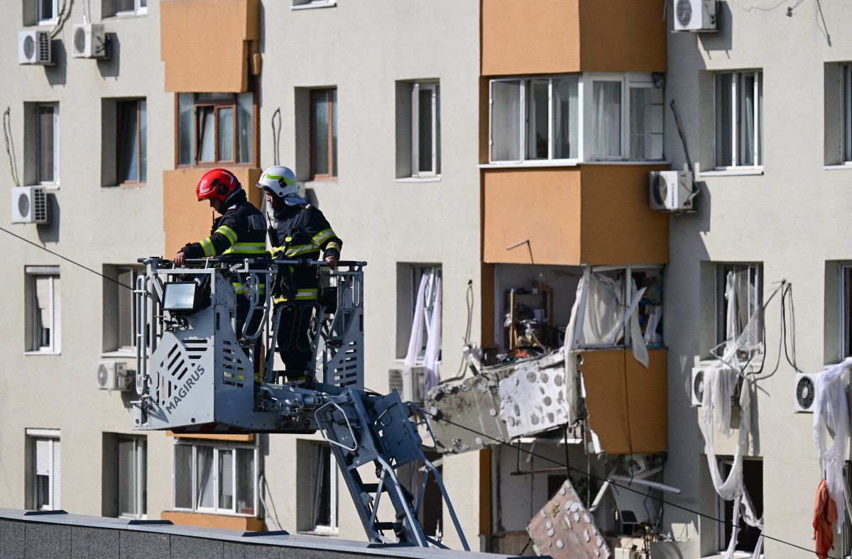 The explosion severely damaged two floors of the eight-storey block, putting the building at risk of collapse and forcing the evacuations of residents, as well as pupils and teachers in a nearby high school in the southwest of the Romanian capital.